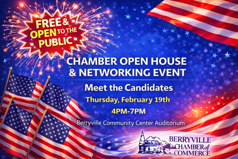 Free and Open to the public! Meet the candidates at the Chamber Open House and Networking Event. Thurs, Feb 19th 4-7pm at the Berryville Community Center Auditorium.